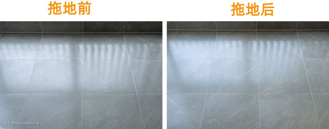 专业的擦地方式只是一方面,拖地效果怎么样才是重中之重。清易H40 PLUS的拖地效果如下,说一尘不染感觉也不过分。