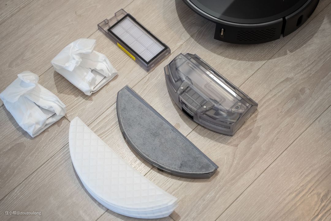 清易H40 PLUS附送了几个尘袋和一次性拖布,尘袋不必多说,在日常的集尘操作时,可以做到免脏手,自打包,使用起来很方便,而且其实要把一个3L容量的尘袋装满,也能用很久的时间了,所以尘袋这种消耗件的成本并不会太高。一次性拖布也是一样的道理,只有在平时拖重油污地面时用得到,也省去了清洗拖布的麻烦。