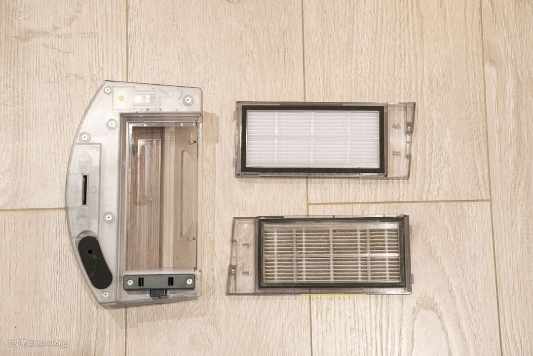日常尘盒还是比较干净的,但扫拖机器人使用时间长了,滤网和主刷难免会缠绕和堆积一些毛发和灰尘,定期清洁是所有清洁机器必不可少的维护。维护也很简单,取出用水清洗晾擦干尘盒,滤网则放一旁彻底晾干,然后替换新的滤网继续使用即可,这样不仅能让清易H40 PLUS持续高效工作,还能提高机器寿命。
