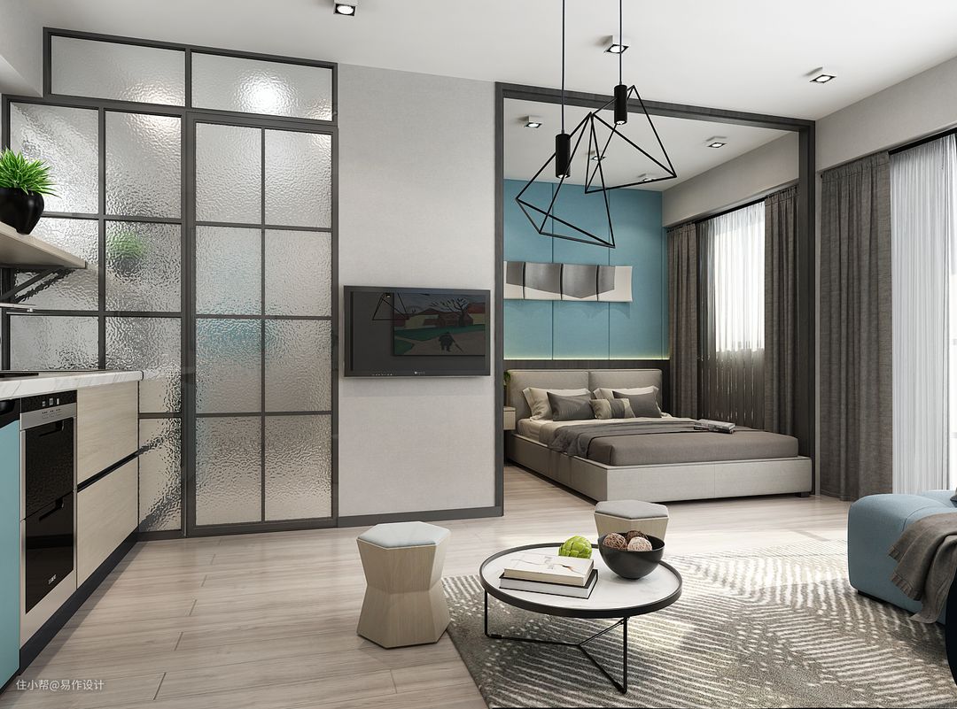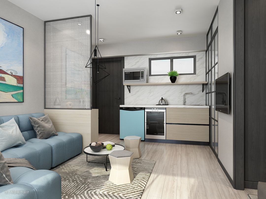 这是一套位于宝安的小公寓,面积为30㎡,房子的采光极好,加上室内浅蓝色的装饰,整个空间完全没有小房子的局促感,而且客厅、厨房、卧室、卫浴等功能齐全,是一个小而美的宜居空间。