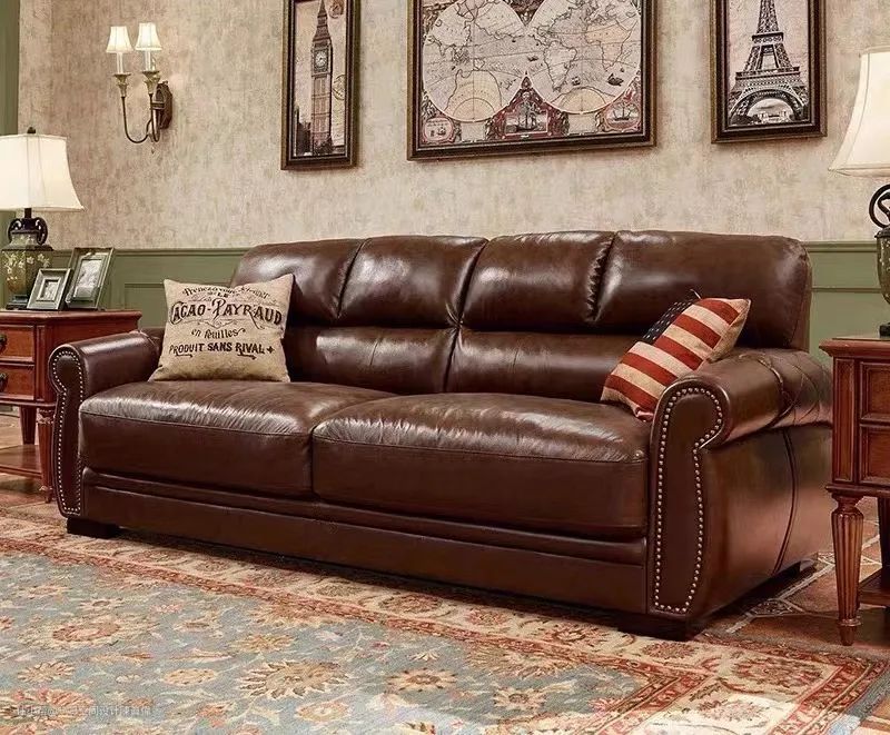 美式沙发一般造型朴实大气,带有一些粗犷的感觉,有一些特定的美式元素在其中,如铆钉,老虎椅等。
