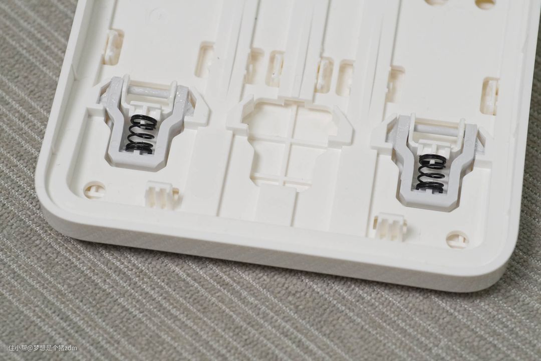 和普通的机械式开关翘板不同的是,这种智能开关并没有上翘和下翘之分,只有按下弹起完成一次开关动作,开关翘板内侧的弹簧保证了按下后弹起的手感,这款开关的按压手感还是非常不错的,回弹迅速,行程较长,动作非常清晰,官方宣称耐久性可以承受80000次反复按压。