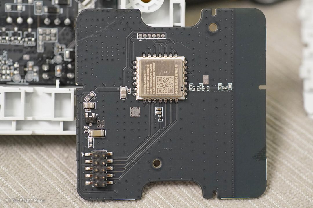 上层PCB的背面是一块蓝牙通讯模块,通过蓝牙无线连接到智能家居系统的蓝牙MESH网关上,就能实现智能家居的接入和控制。