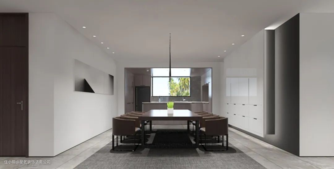 深木色餐桌椅,在三面白墙的餐厅中,低调又极具质感。