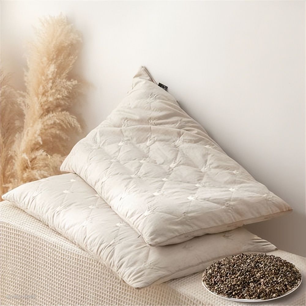 传统枕头,里面的填充物就是荞麦皮。这种枕头的好处,是可以随时改变内部填充物的位置,从而达到合适的高度。