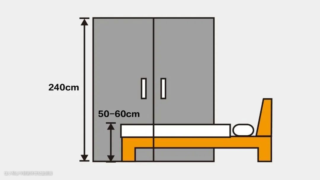 卧室的尺寸很复杂,主要包括衣柜的宽度和高度、衣柜与过道的距离、床与过道的距离、床的高度。具体尺寸可以参考下图。