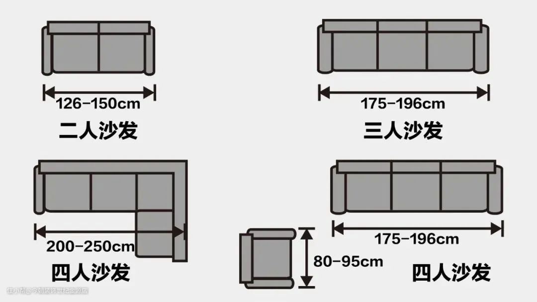 我们以常见的普通靠背沙发为例,靠背高48~60cm,座面深度48~60cm,宽度应大于48cm,座面高度36~42cm,这种较为舒适。