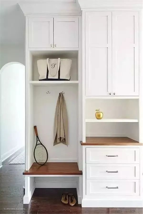 换鞋凳:长宽40-60cm,高度40-55cm,而对于一些面积较小的玄关,现在网上也有一些25-30cm直径的小圆凳,作为临时换鞋用的话,也是挺不错的。