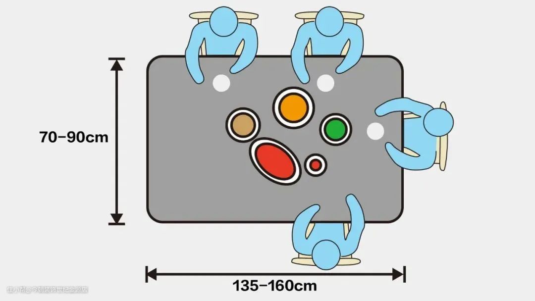 餐桌的大小与用餐人数有直接的关系。1-3人和4-6人的餐桌设计尺寸不尽相同。