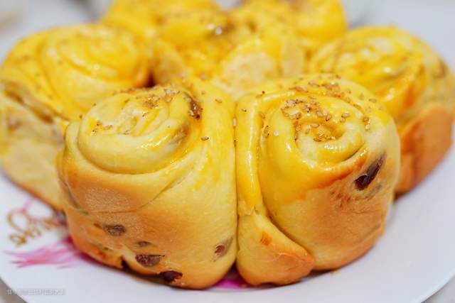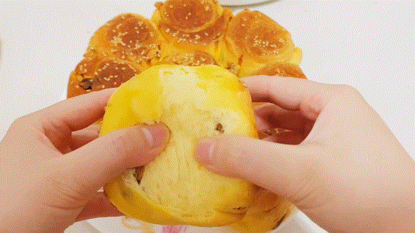掰开来还有拉丝状,里面是一层一层的,咬一口还能吃到甜甜的葡萄干,真的是太好吃了~