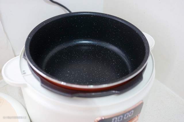 电压力锅的内胆与食物直接接触,不同的材质会涉及到加热效率与后期清洗两方面。目前主要有不锈钢内胆、复合涂层內胆两种,我购买的这款是复合涂层材质,不粘锅底非常好清洗。