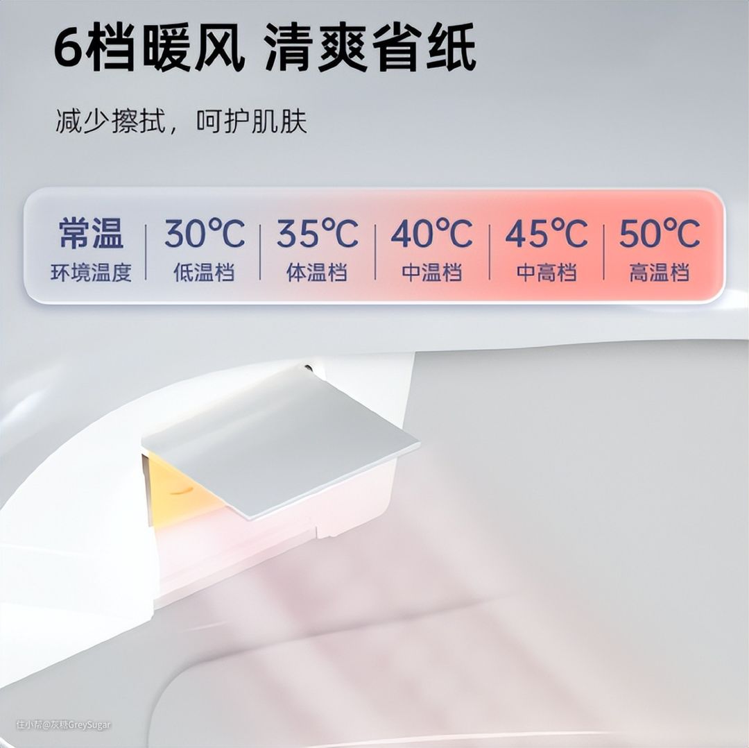 烘干功能只需要注意温度调节范围即可。这里要给没用过的朋友说一下,洗了屁屁后烘干再怎么快,也要1-2分钟,比较急的话还是要用纸擦。
