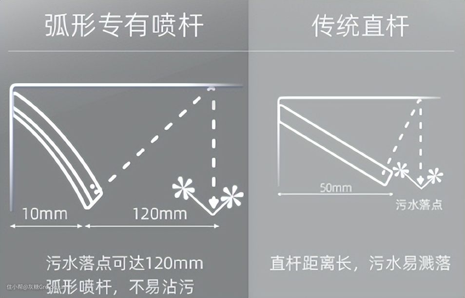 除此之外,还可以进一步选择弧形喷杆,这种喷杆污水更不容易溅落。