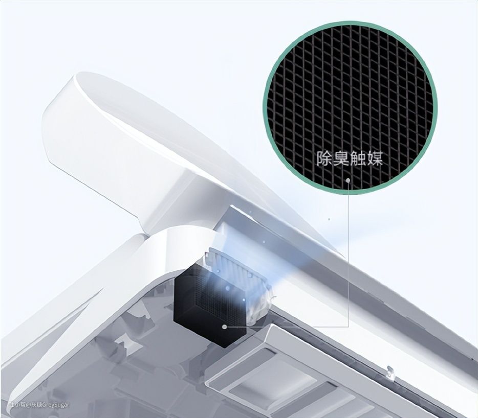 除臭功能就简单了,目前最主流的除臭功能都是用抽风机抽走臭味,然后用活性炭过滤实现的。