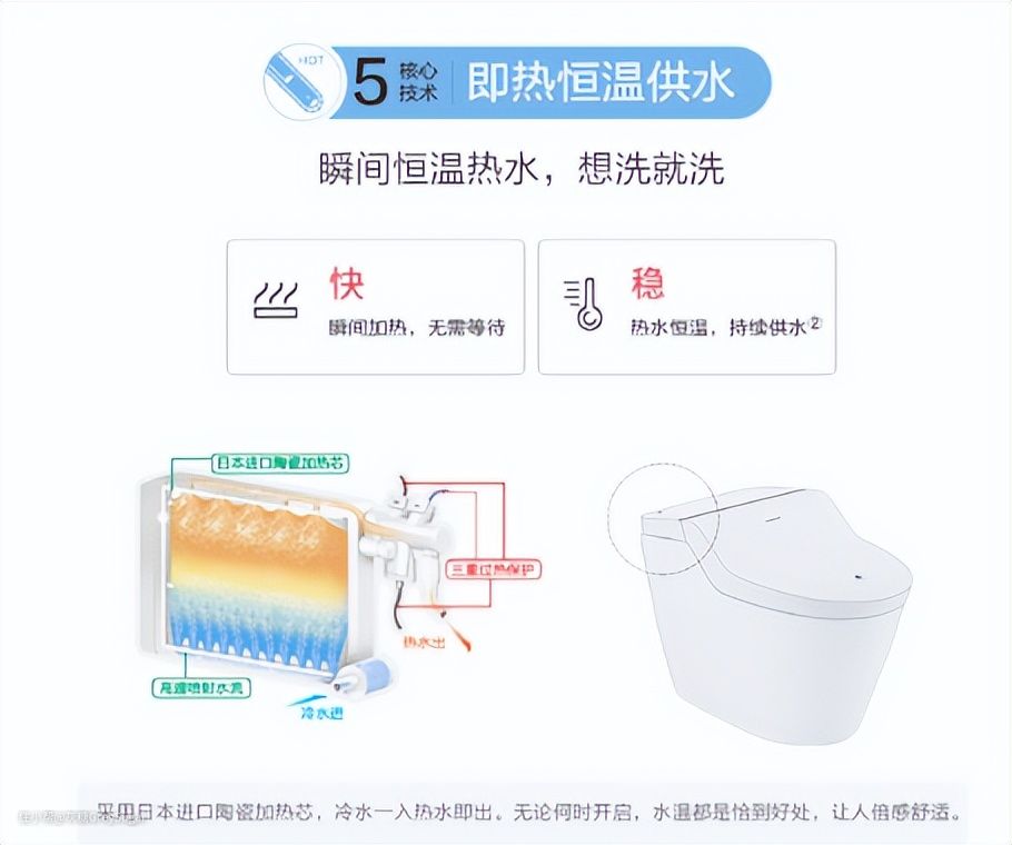 这部分很多攻略会说要关注洗屁屁的水,到底是即热式还是储热式。哥,储热式基本都是上世纪的产物了,我现在想买一个储热式的反而还更有难度。