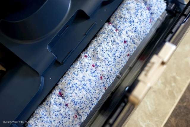 有值友评论说自己家洗地机的刷毛用几次后清洁力下降了,这其实跟滚刷是全软毛设计有关。清洁时滚刷高速转动后,全软毛会比较容易“坨”在一起,尤其对于大颗粒固体物质,滚刷在转动时很有可能无法“带起”杂物。
