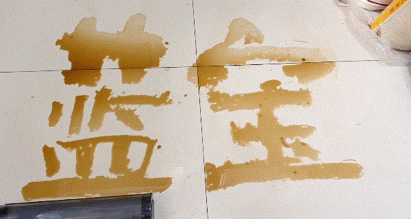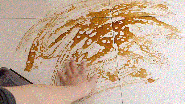 然后我开启蓝宝洗地机的强力湿拖模式,吸干净瓷砖上的鸡蛋液后,立刻用纸巾盖在上面拍打测试。动图中可以看到强力湿拖后,纸巾只有些微的打湿,整体出水量控制的还可以。