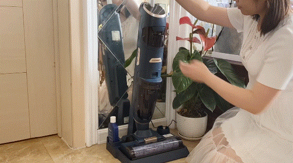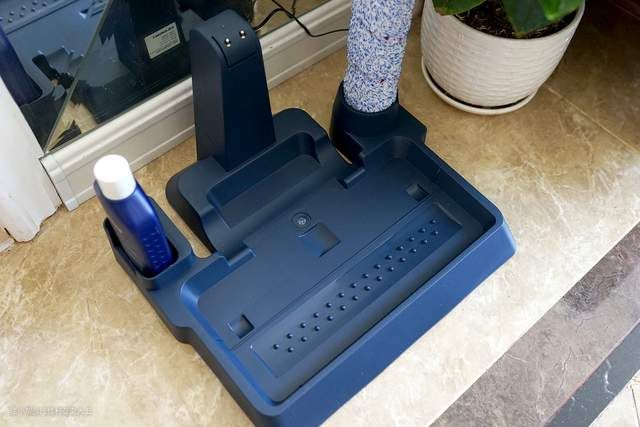 值得一提的是,这款洗地机的充电底座上,有凸起的浮点设计,作用类似洗衣板。这样清洁滚刷时效果自然会更好,细节好评。