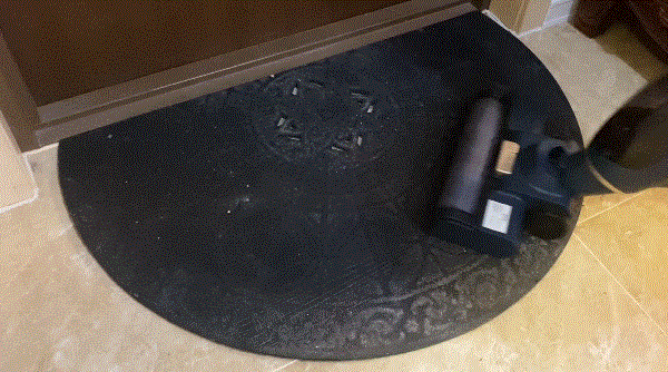 我家进门地垫隔一段时间不清理就满是灰尘,开启蓝宝洗地机的强力湿拖模式,几下就干净如新了。同样用纸巾测试一下,几乎没有水痕,晾个三五分钟就自然干了。