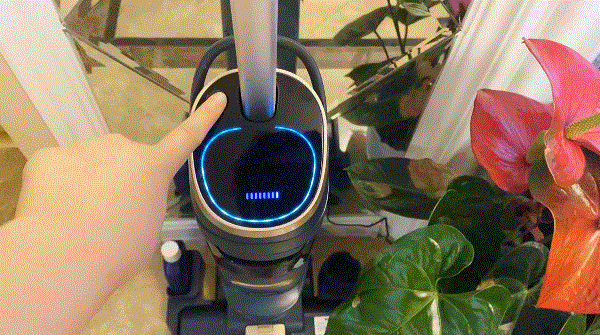 蓝宝电解水除菌洗地机的自清洁是定时1分钟,把机器放回底座,按下屏幕左侧的自清洁键,机器就会自动检测滚刷的清洁度,然后开始清洁,干净后会自动停止,整体操作十分简单。