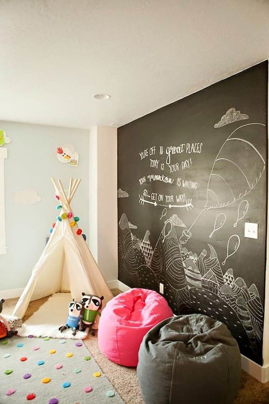 1、如果主要用于儿童涂鸦,那么需要一面面积较大的黑板墙且活动空间够大(避免孩子磕碰受伤),一般儿童房和走廊的墙面比较适合,其中儿童房更加适合亲子教学互动。