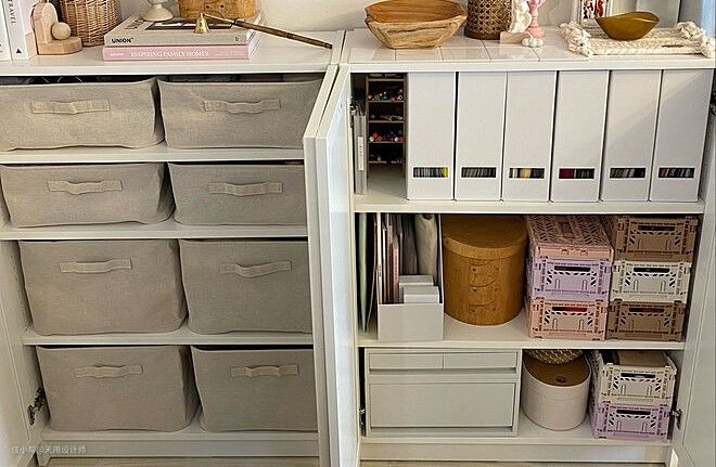 收纳盒可以最大程度利用好开放式柜子,同时让家里显得井井有条不凌乱▲