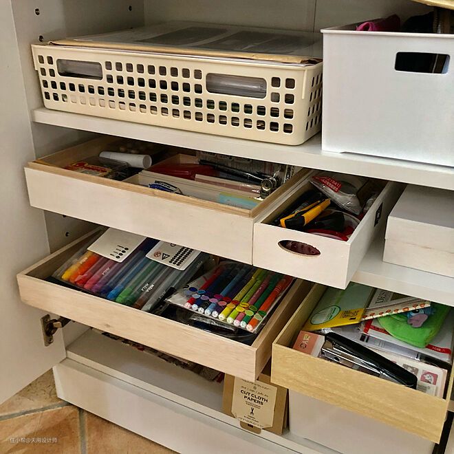 文具是最容易忘记的物品,一两支笔用过后自然而然就放在了桌面,不妨在桌底设一个文具收纳专区,方便又整洁▲