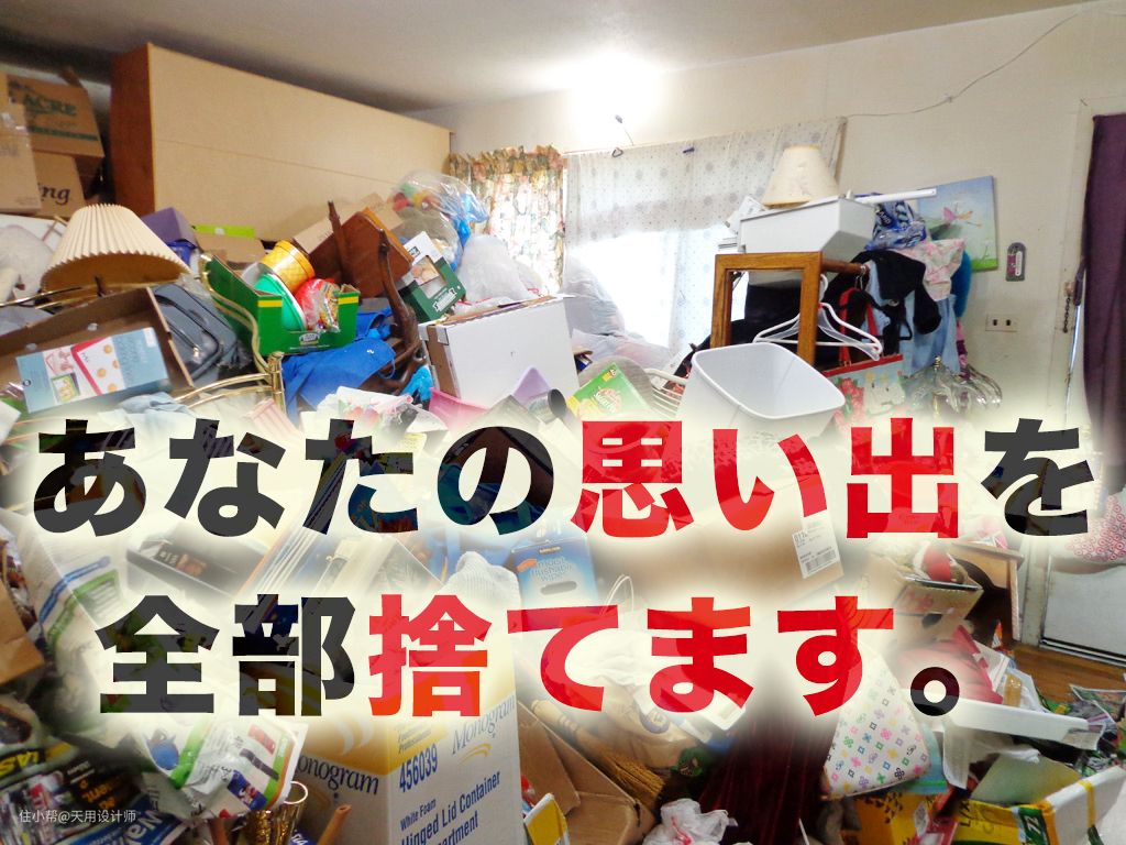 日本断舍离的图片和标语“把你的回忆全部丢掉”▲