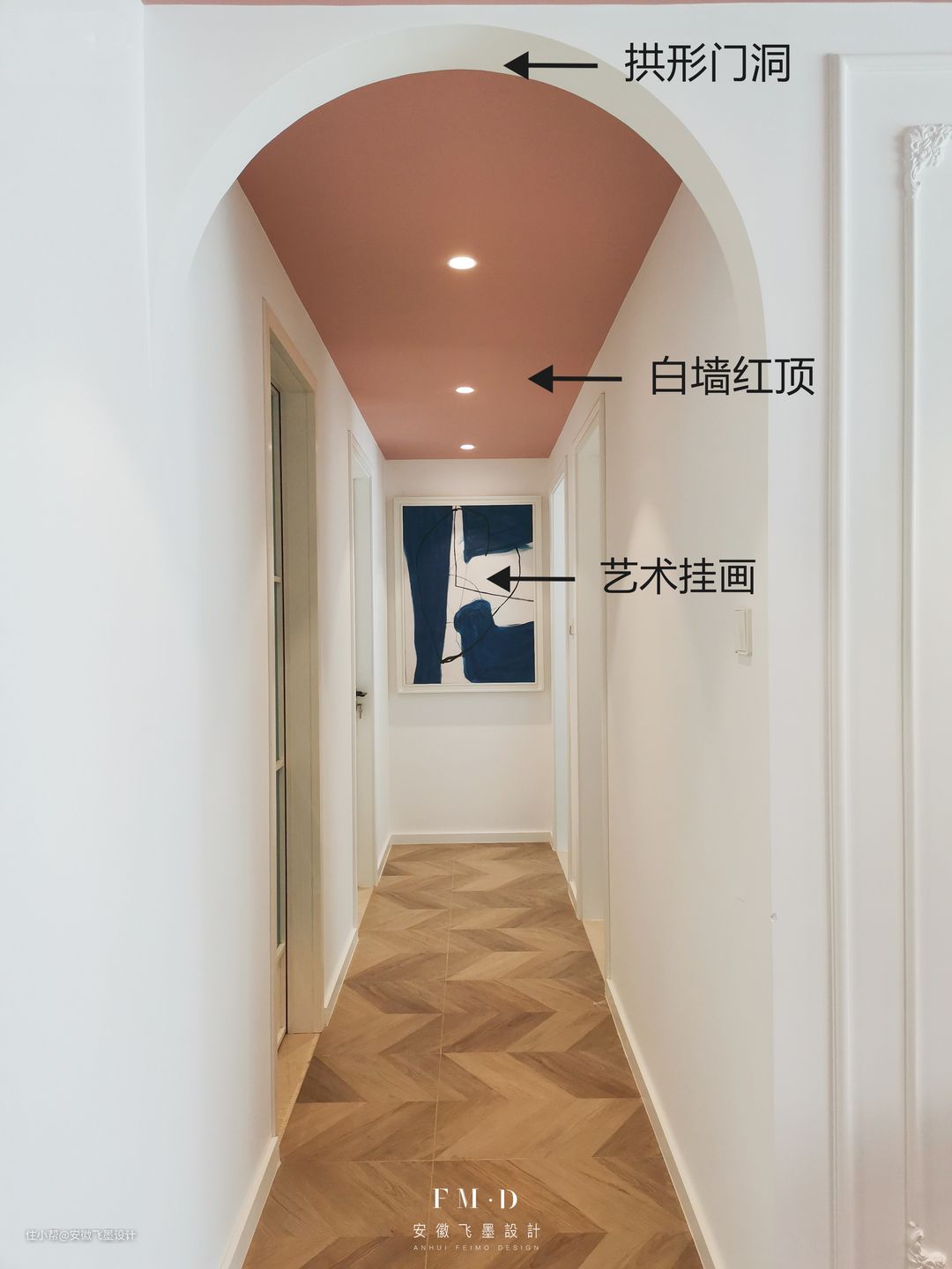 这是最简单易操作的,选幅自己喜欢的画作,然后挂在墙面上即可。就像【公元天下】这位业主家一样,艺术性的挂画,顶面刷成饱和度高的红色,与白墙相呼应,整个过道空间显得精致无比。