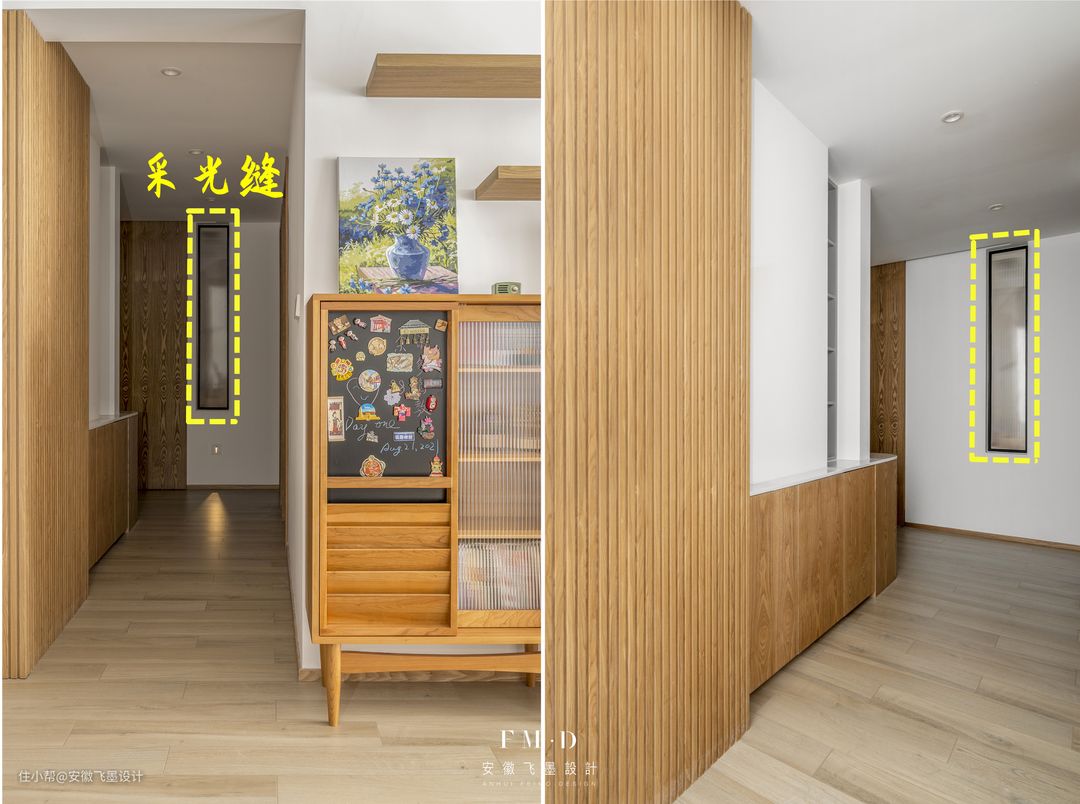 在房间光线不足的情况下,干脆在端景墙处开条采光缝,嵌入长虹玻璃,既达到了采光的效果,同时也起到点缀墙面的作用啊,看上去没那么单调了,实属一举两得,给这个创意点个大大的赞。