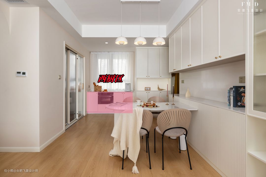为了让空间利用率最大化,灵机一动,将飘窗摇身一变成西厨区!和玄关柜连为一体,整体性强,收纳也翻倍,底部还能嵌入电器,使用方便得很。