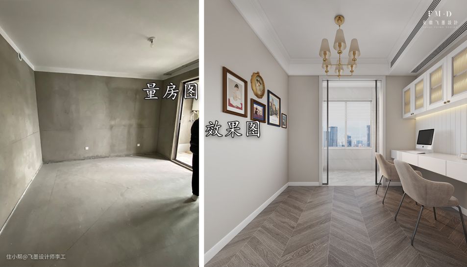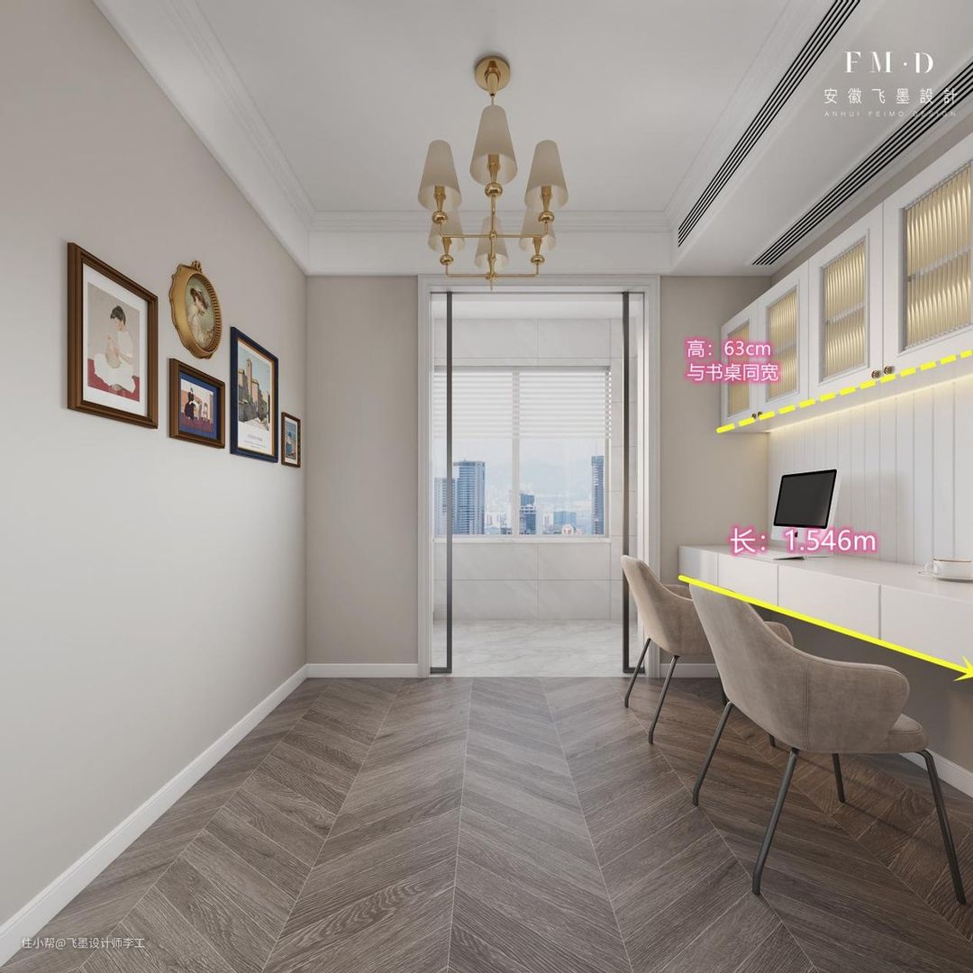 书房整体还是以米色+白色为主,简约又有层次,营造一个安静的氛围。地板将会铺人字拼木地板,大气稳重中不失巧思。