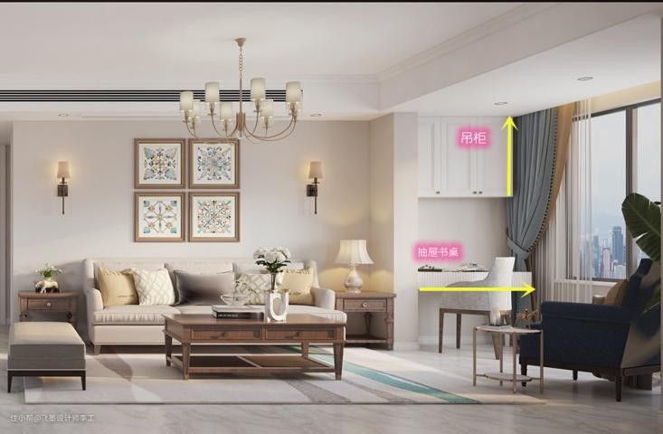 业主夫妻俩有个可爱的女儿以及带着一个老人,4家四口一起生活,对于生活质量要求很高,加上自身不俗的品味,让他们选择了美式风的装修风格,沉稳、大气且不失轻松的居住环境是他们追求的。一起来看看这套房会呈现出怎么样的效果吧: