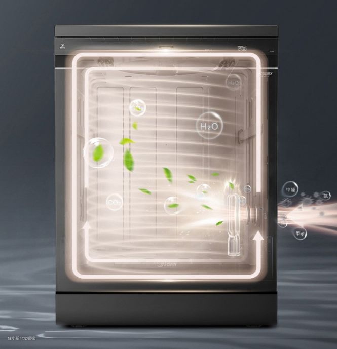 干燥的餐具能有效避免细菌滋生,在烘干方式上,美的极光洗碗机GX1000也有所升级。相比第5代的热风循环暖热烘干,GX1000独有专利级热风烘干技术再升级,增加了光触媒净化,内外气流循环,洁净热风烘存,实现烘干、净味、除菌、储存一步到位,保持碗碟的长效净味除菌自由。