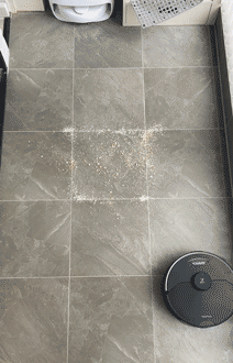 地面上大大小小的一堆饼干碎,在经过石头G10S Pro的清扫后,我只看到了两粒残余,其余的颗粒都被完全扫除(包括夹在地缝里的顽固污渍),清扫效果更胜一筹。
