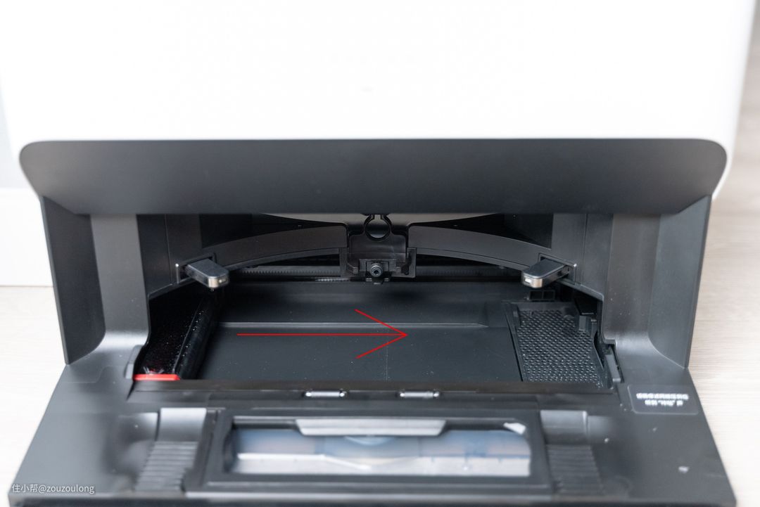 石头G10S Pro的基站底部设计其实还是有颇多细节值得称道的,除了一个主刷形状的自动集成口外,比较吸引我的是内部拖布形状的结构,中间是一个自动给机器人水箱补水的装置,底部左侧是一个滚刷,右侧则是一个带滤网的污水口。