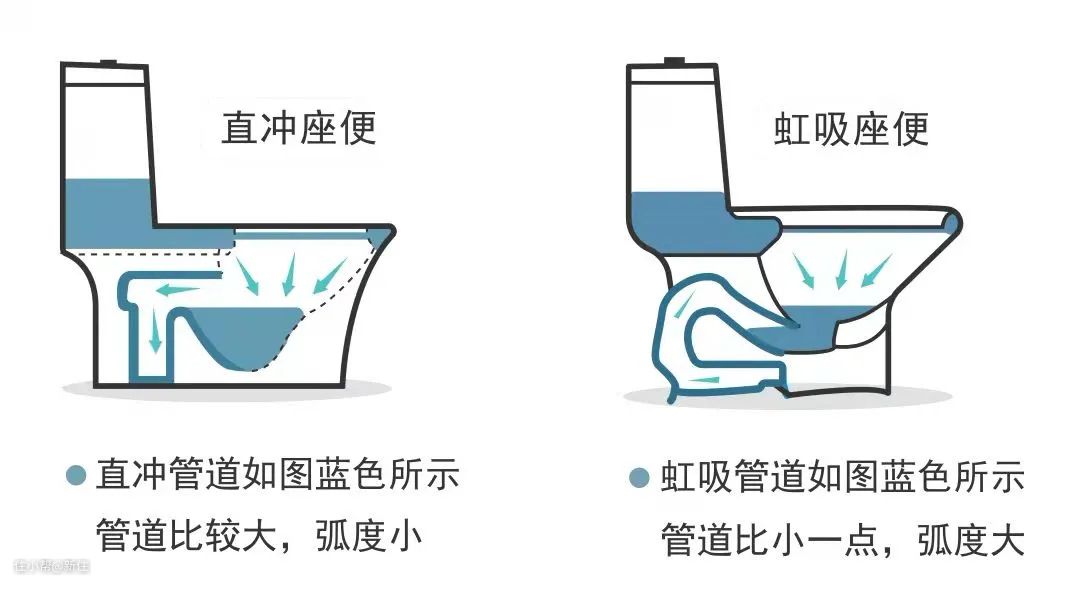 不要直冲式的和喷射式虹吸的,前者噪音大,单向冲水,水花四溅,防臭效果差。后者边缘多个小孔出水,不好清洁。