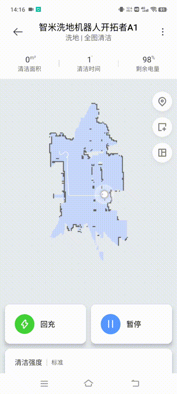 沿墙清洁时转速由当前清洁强度(轻污、标准、重污)决定,机器整体也是分为三挡清洁模式,不过我一般都是选择标准为主,