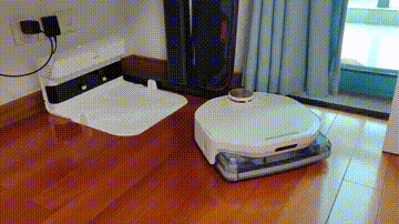 最后就是很烦人的自动清洁了,机器回到底座以后,会先自动清洁滚刷,然后进行风干,或者你放入充电盒子风干,再也不会有臭臭的情况发生了。