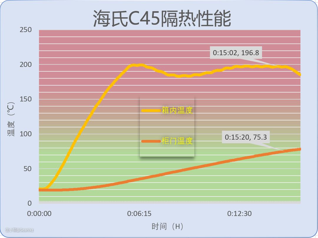 重新看了一下海氏的宣传用于,带有“反射热能 二次聚热”的字样,应该是内层玻璃厚度或者是功能上有一定差别,这让更薄的柜门获得了更高的隔热效果,海氏的表现要好一些。