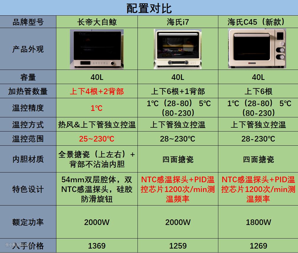 长帝大白鲸、海氏i7、海氏C45千元级烤箱对比评测