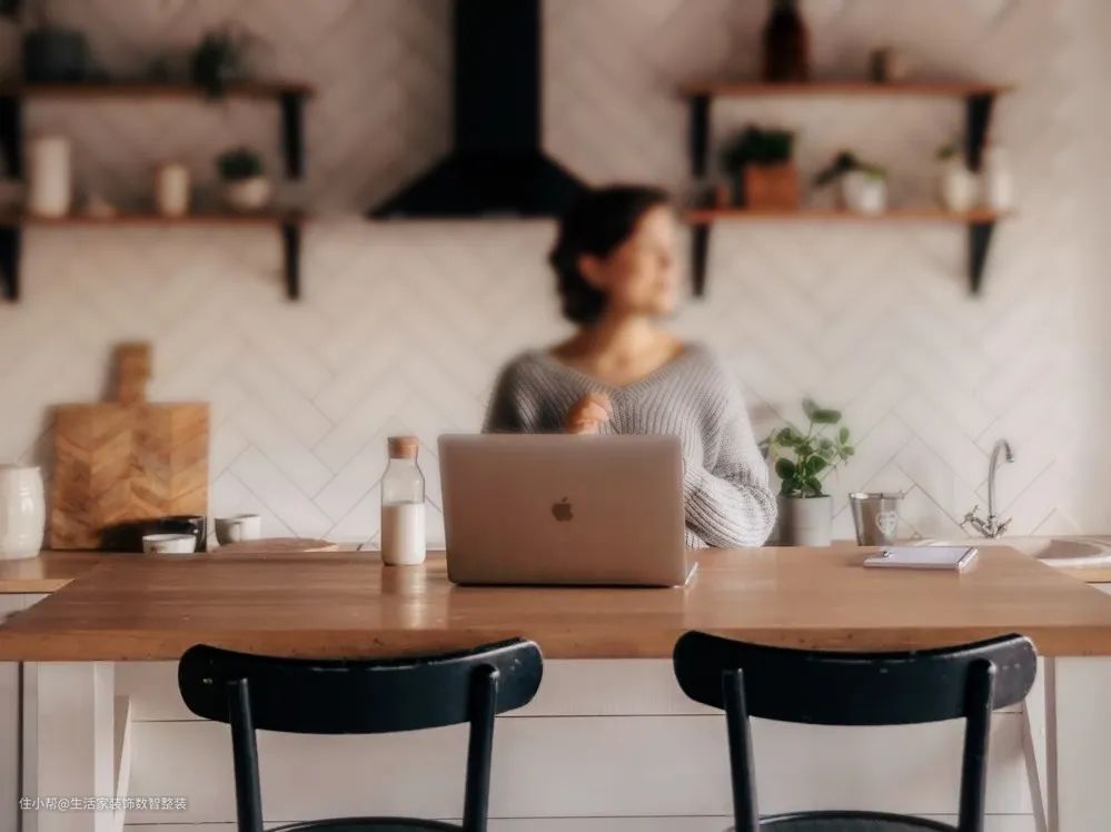 兼顾做饭与工作:采用半开放式布局,在工作区与厨房之间设置吧台、门帘等隔断,起到过渡作用,减少油烟影响。