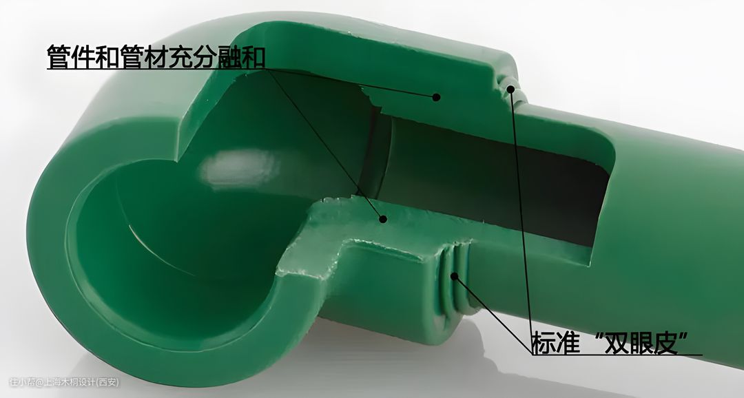 目前给水管配件的连接主要采用的是热熔机来进行焊接,由于PPR材料需要用热熔承插连接形成管道系统,进行连接时,热熔温度需要达到260℃,管材与配件进行表面清洁后同时在热熔机上加热适当时间后可以进行插接。热熔的优点:成本低、操作简单、安全可靠、漏水概率低。