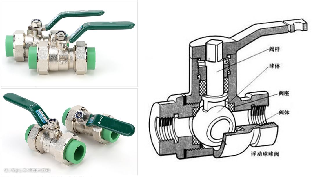 ②球阀:球阀指的是用带圆形通孔的球体做启闭件,球体随阀杆转动,以实现开启闭合的目的。