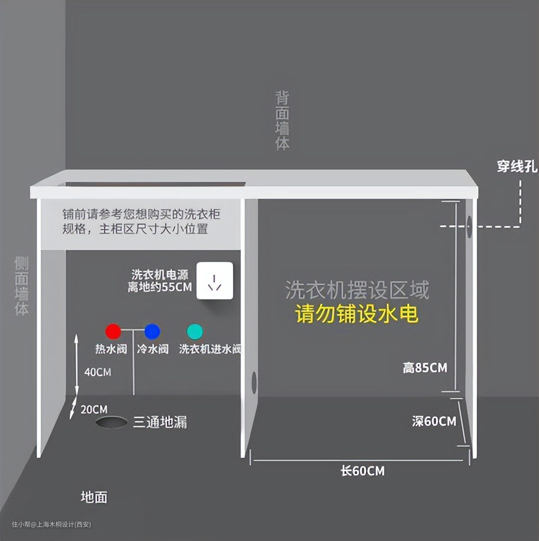 阳台:带洗衣柜洗衣机400-500mm、翻盖洗衣机1100mm、拖布池750-850mm。