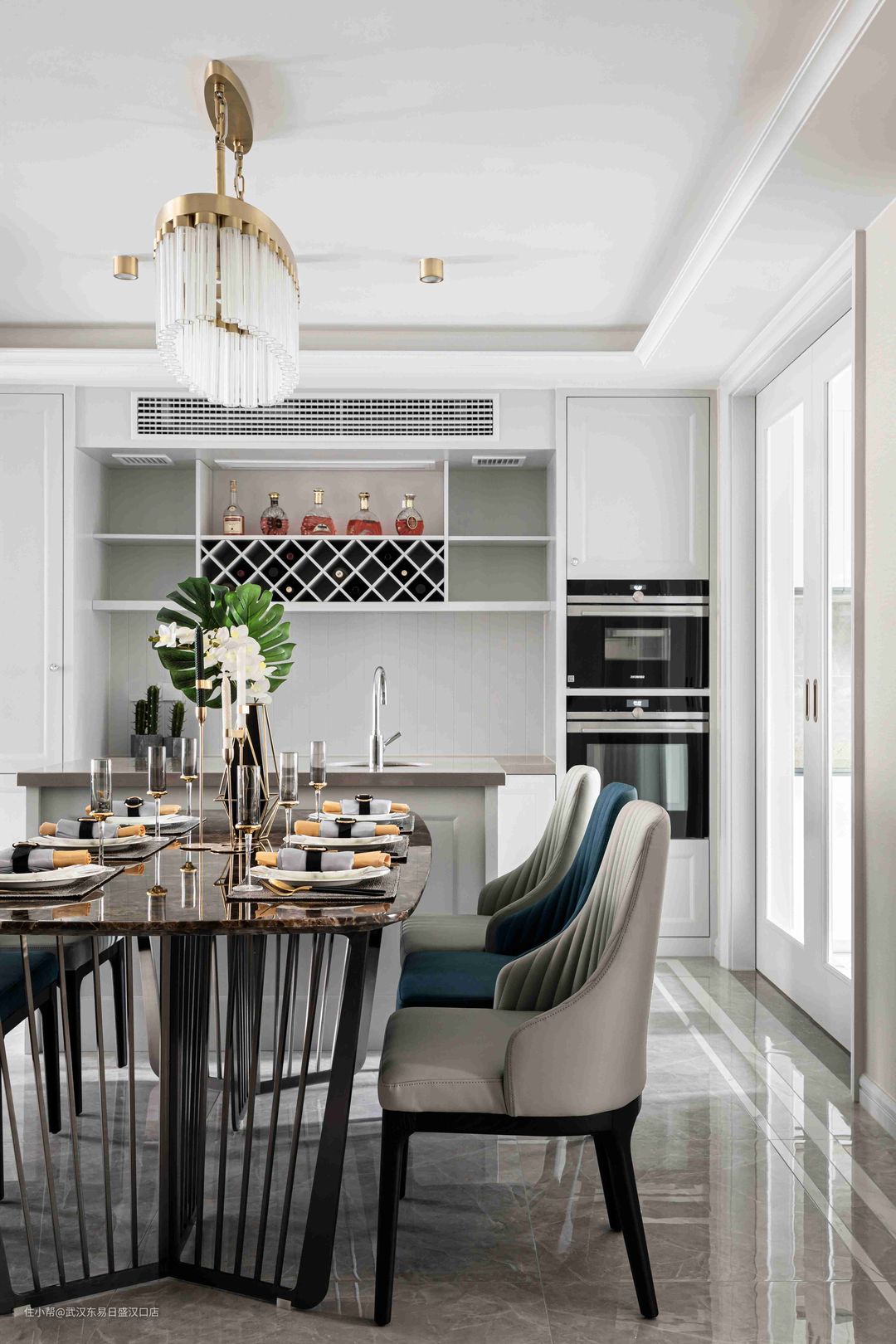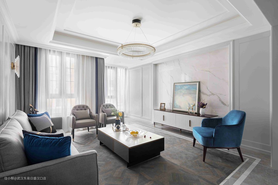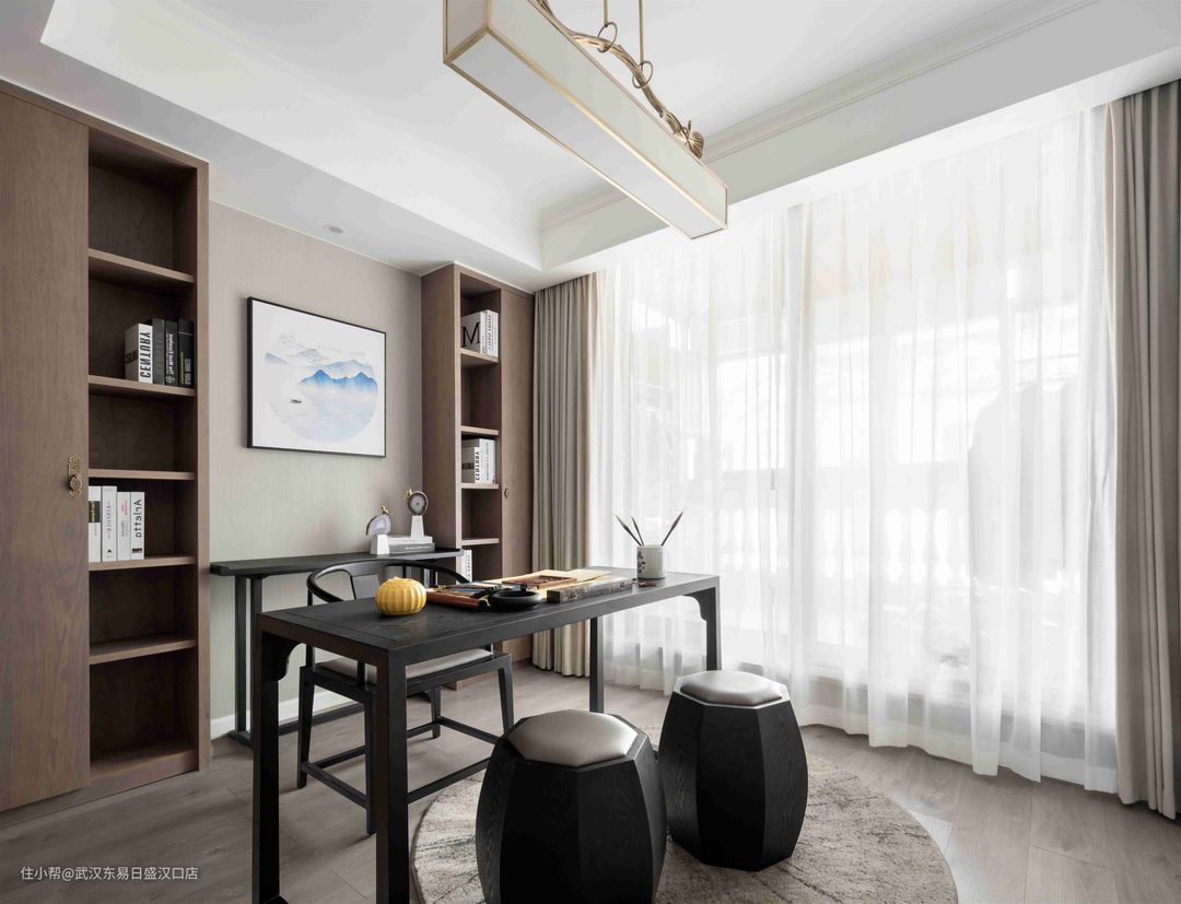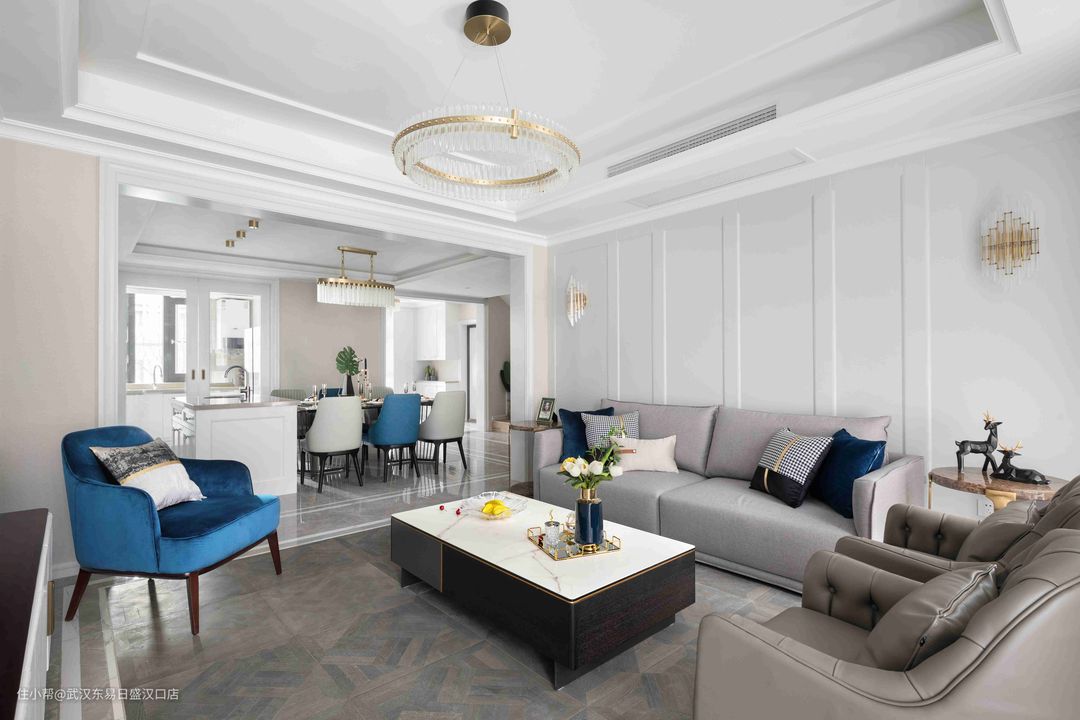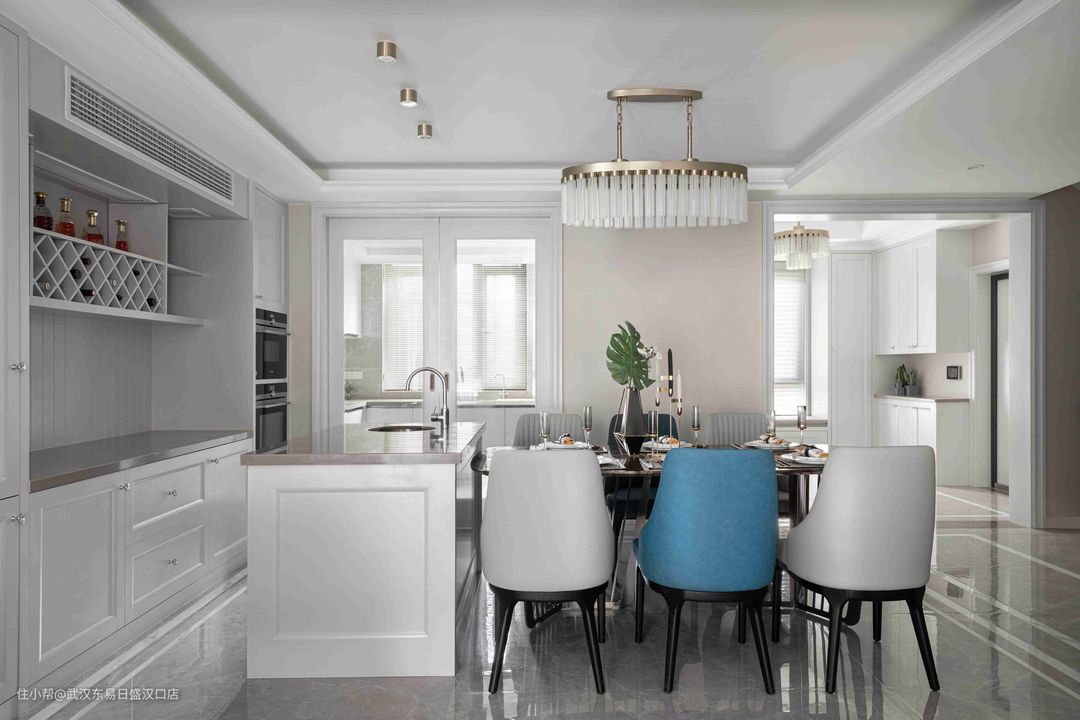 300㎡美式轻奢融合新中式,打造高格调公寓!武汉东易日盛汉口店2022-04-01今天分享的是一套300平方米的公寓,设计方面将美式轻奢风格和新中式相结合,营造出个性,高级,奢华质感的居住氛围。客厅、餐厅、厨房和卧室采用美式风格装扮,每一处空间都呈现出简约的奢华质感。书房选用现代新中式风格装修,搭配中式家具,将东方的意境和神韵之美发挥的淋漓尽致!
