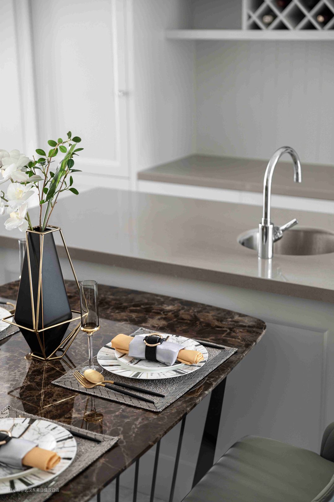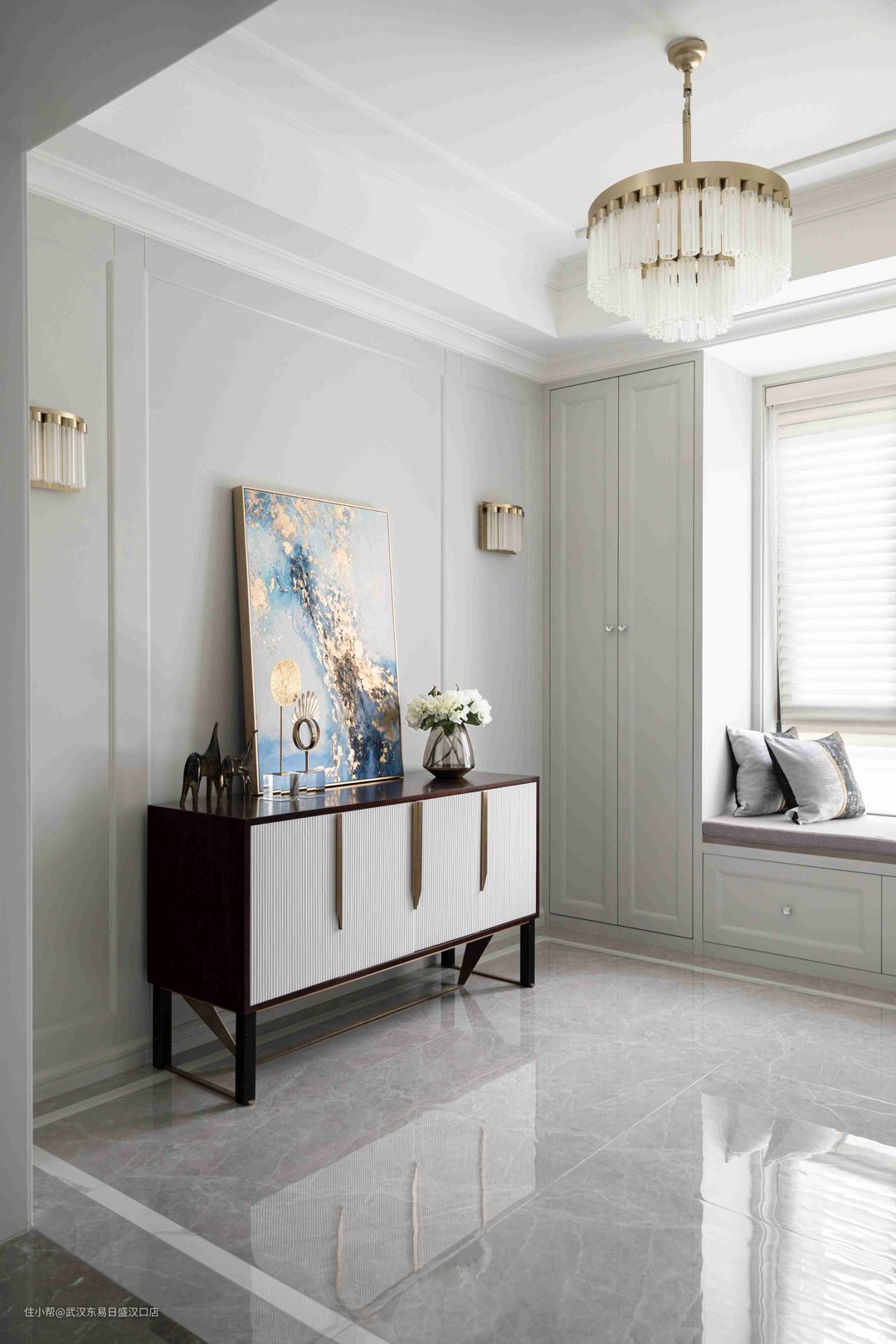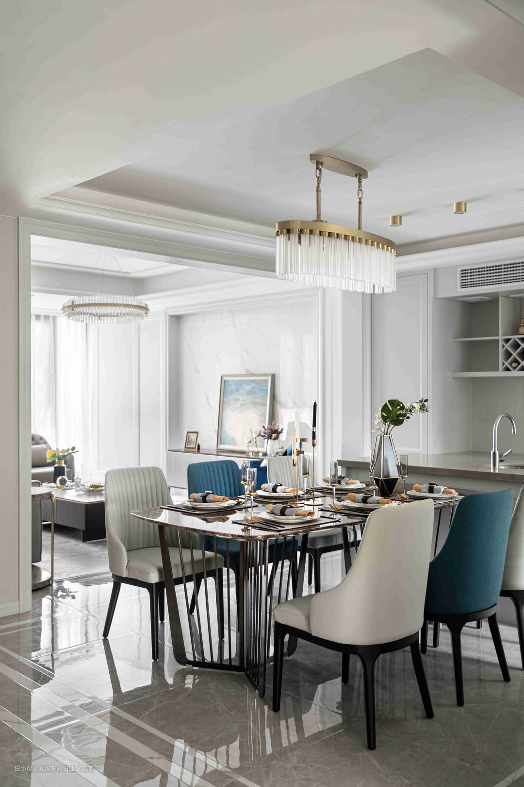 300㎡美式轻奢融合新中式,打造高格调公寓!武汉东易日盛汉口店2022-04-01今天分享的是一套300平方米的公寓,设计方面将美式轻奢风格和新中式相结合,营造出个性,高级,奢华质感的居住氛围。客厅、餐厅、厨房和卧室采用美式风格装扮,每一处空间都呈现出简约的奢华质感。书房选用现代新中式风格装修,搭配中式家具,将东方的意境和神韵之美发挥的淋漓尽致!