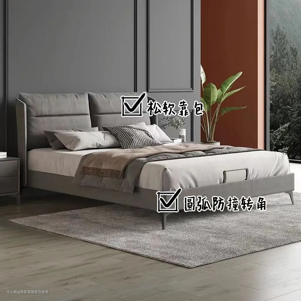 布艺床的风格简约,给人的感觉很温馨。具有真皮的纹理和色泽,同时又具有布艺的透气性,防污防水防尘、耐磨性和透气性都很好,几乎不用清理,因此很受月月这一类年轻人的喜欢。