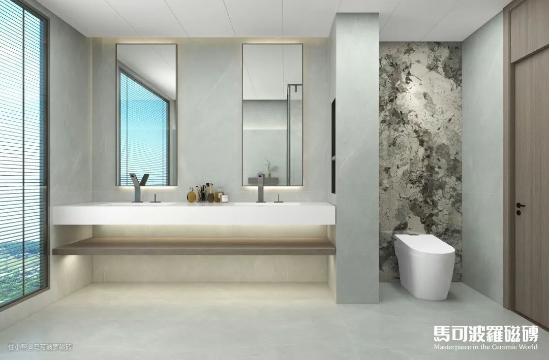 今天,小马哥就为大家精选了马可波罗瓷砖2022新品900×1800mm与750×1500mm规格大板的高颜值卫生间铺贴方案,打造精致简约的家,快来一起看看吧~
