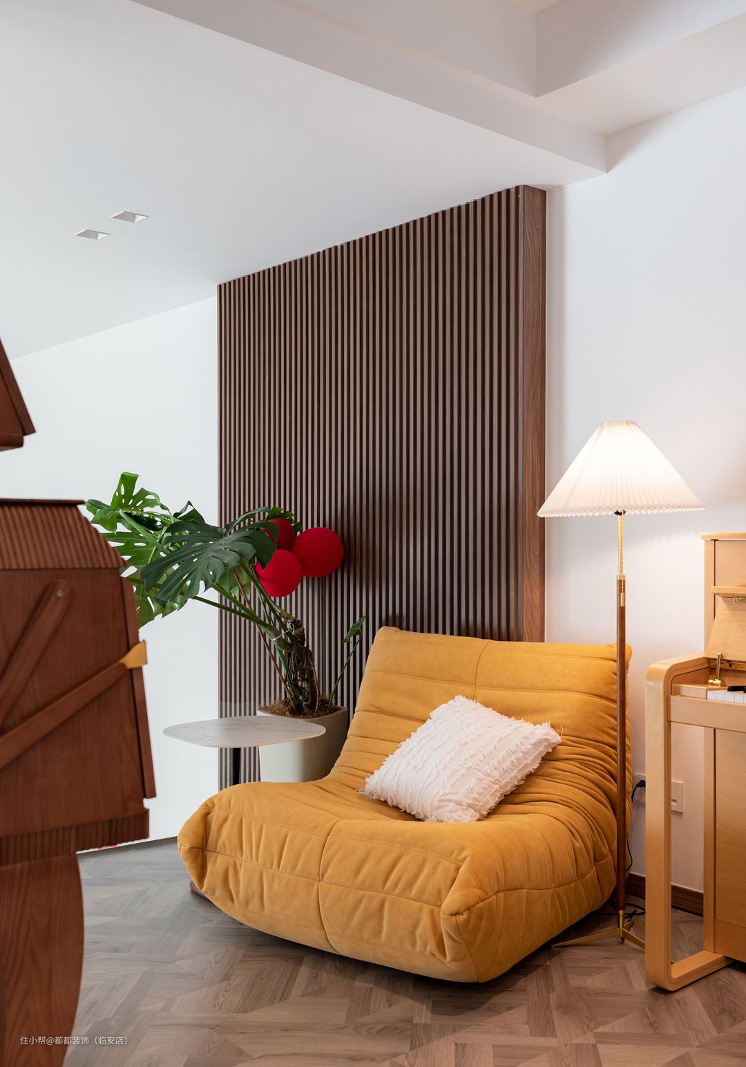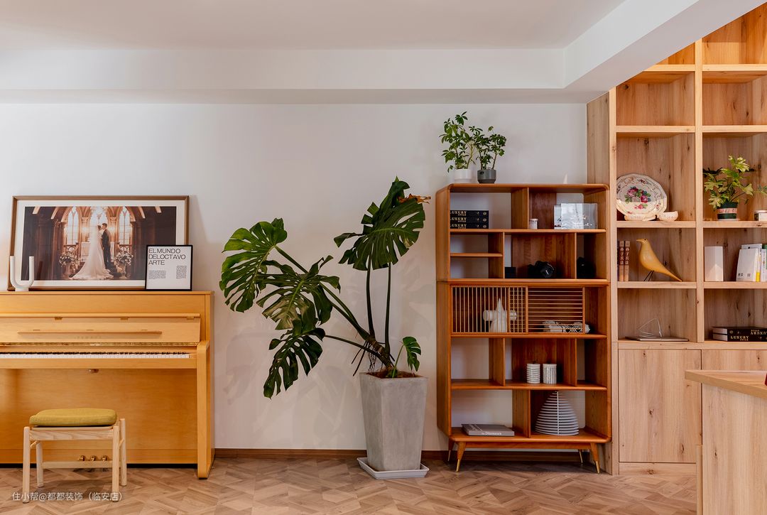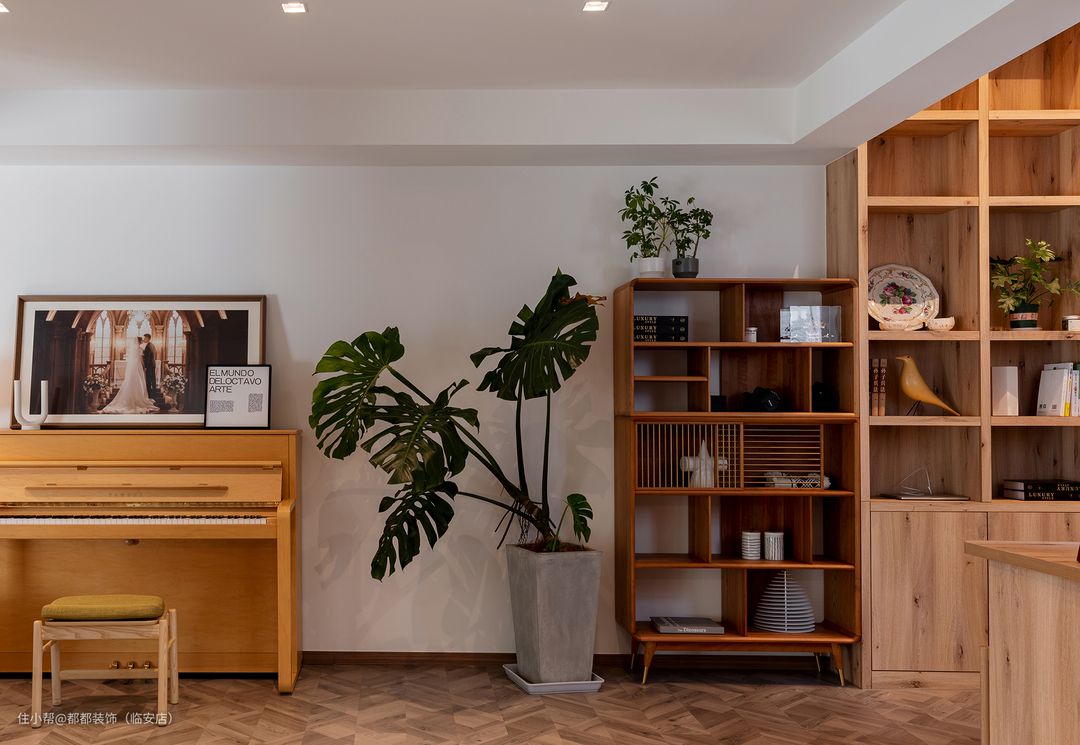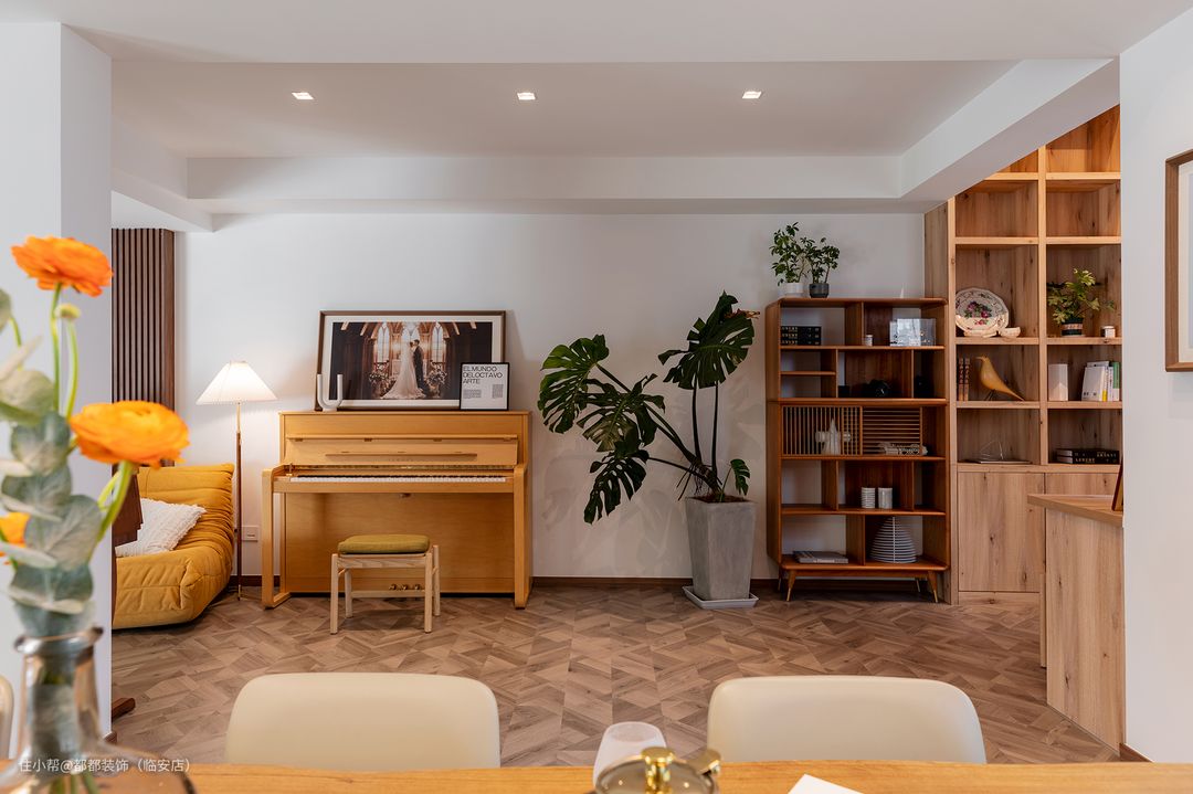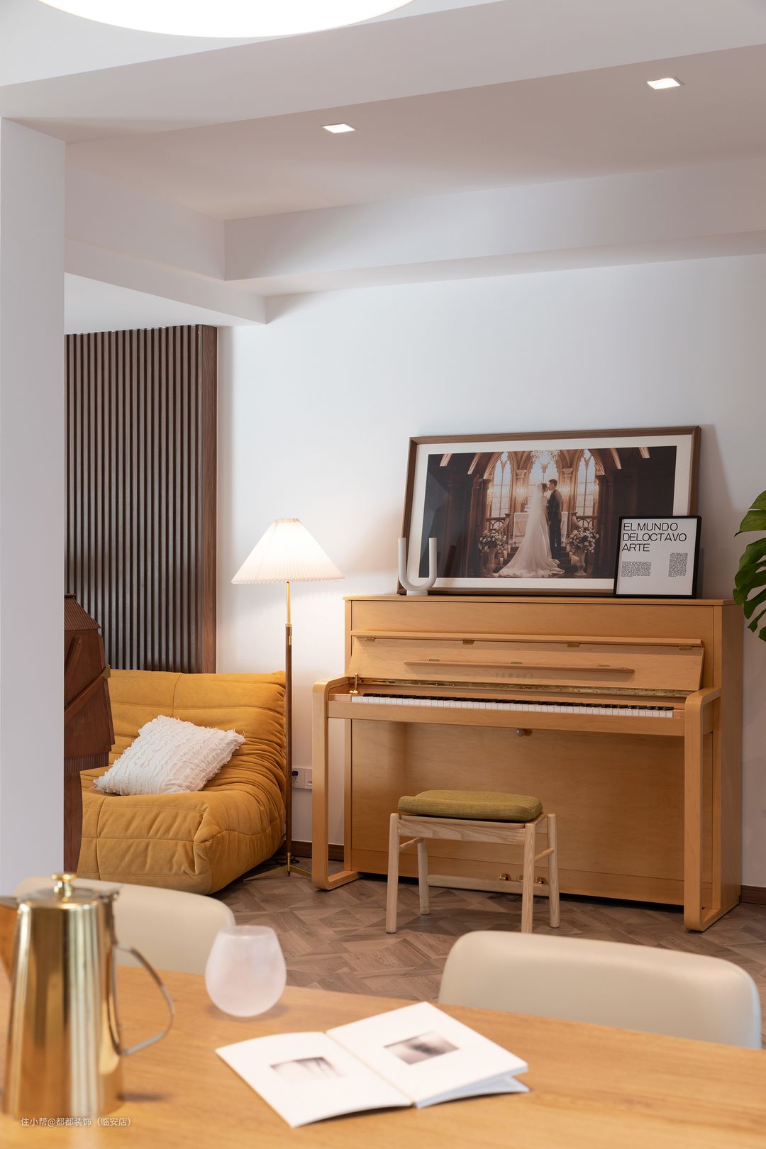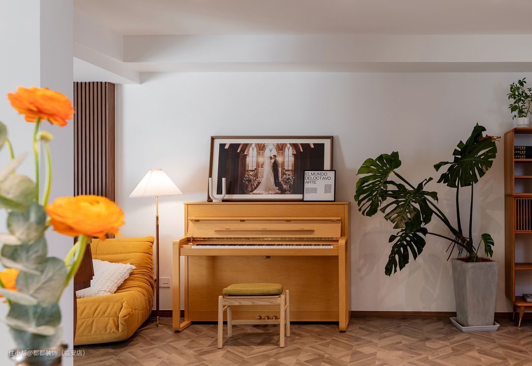 角落处的雅马哈钢琴是业主挥洒灵感的地方,在多层次的低亮度灯光映照下,呈现出暖秋一般,明快而不刺眼的温和质感。